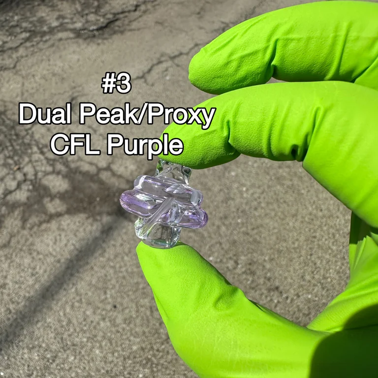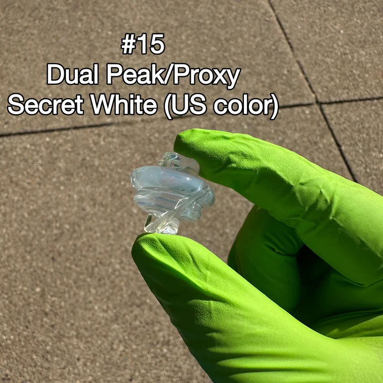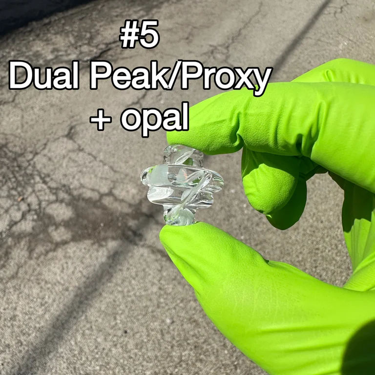 | Type | #1 Peak Clear Opal Cap, #2 Peak CFL Purple Opal Cap, #3 Dual Peak/Proxy Cap CFL Purple, #4 Peak Smoke Opal Cap, #5 Dual Peak/Proxy Opal Cap, #6 Joystick Smoke Opal Cap, #7 Joystick Clear Opal Cap, #8 Joystick Opal CFL Purple Cap, #9 3DXL Joystick Opal Clear, #10 3DXL Joystick Opal Smoke, #11 3DXL Joystick Opal CFL Purple, #12 Joystick Clear, #13 3DXL Joystick Clear, #14 Dual Peak/Proxy Blu-V UV, #15 Dual Peak/Proxy Secret White, #16 Dual Peak/Proxy Clear |